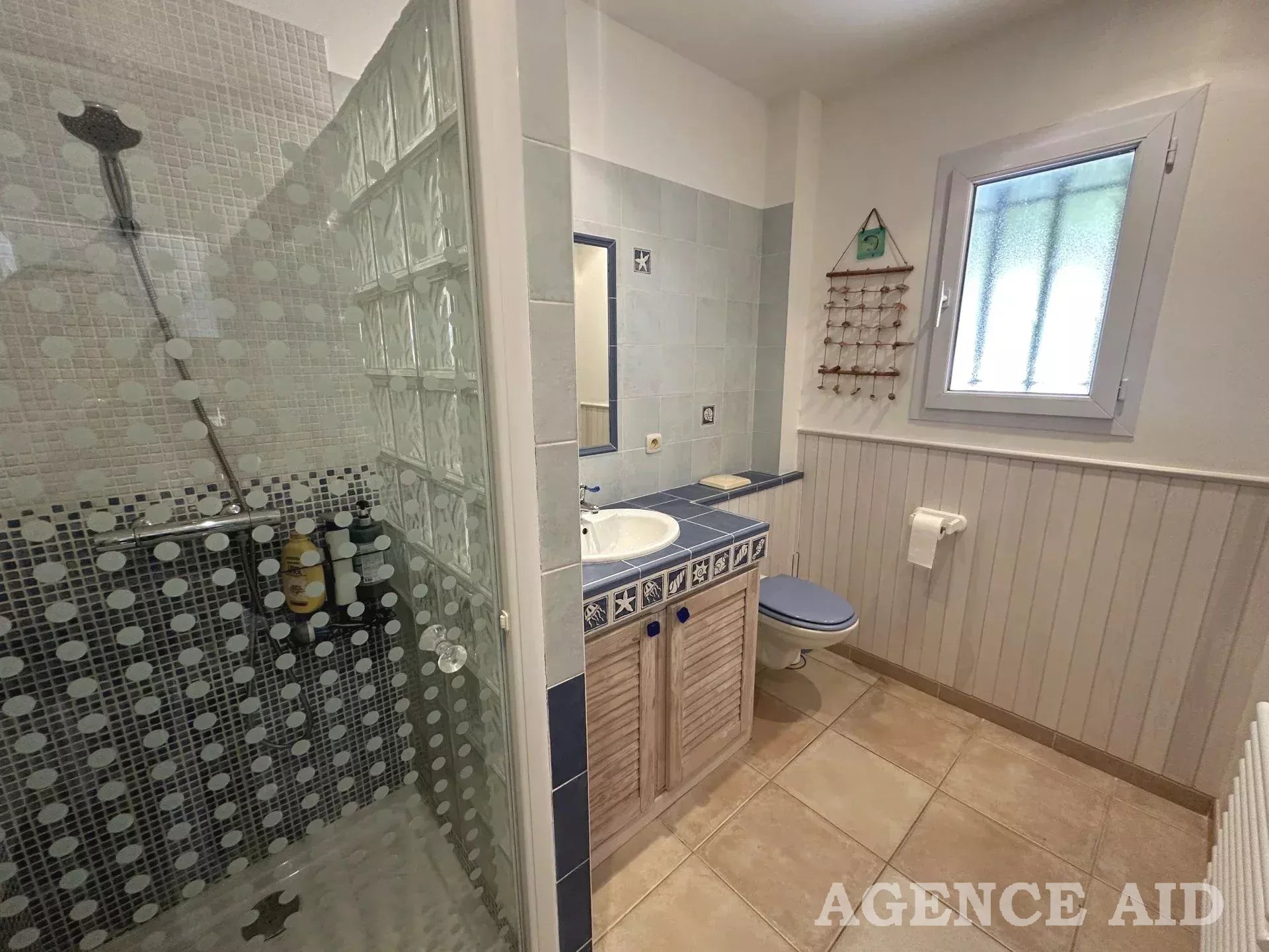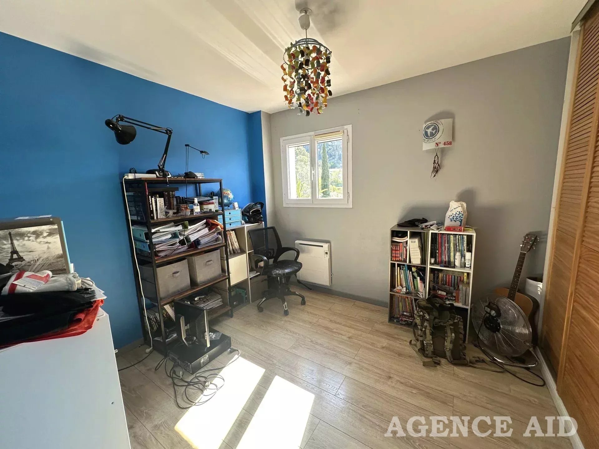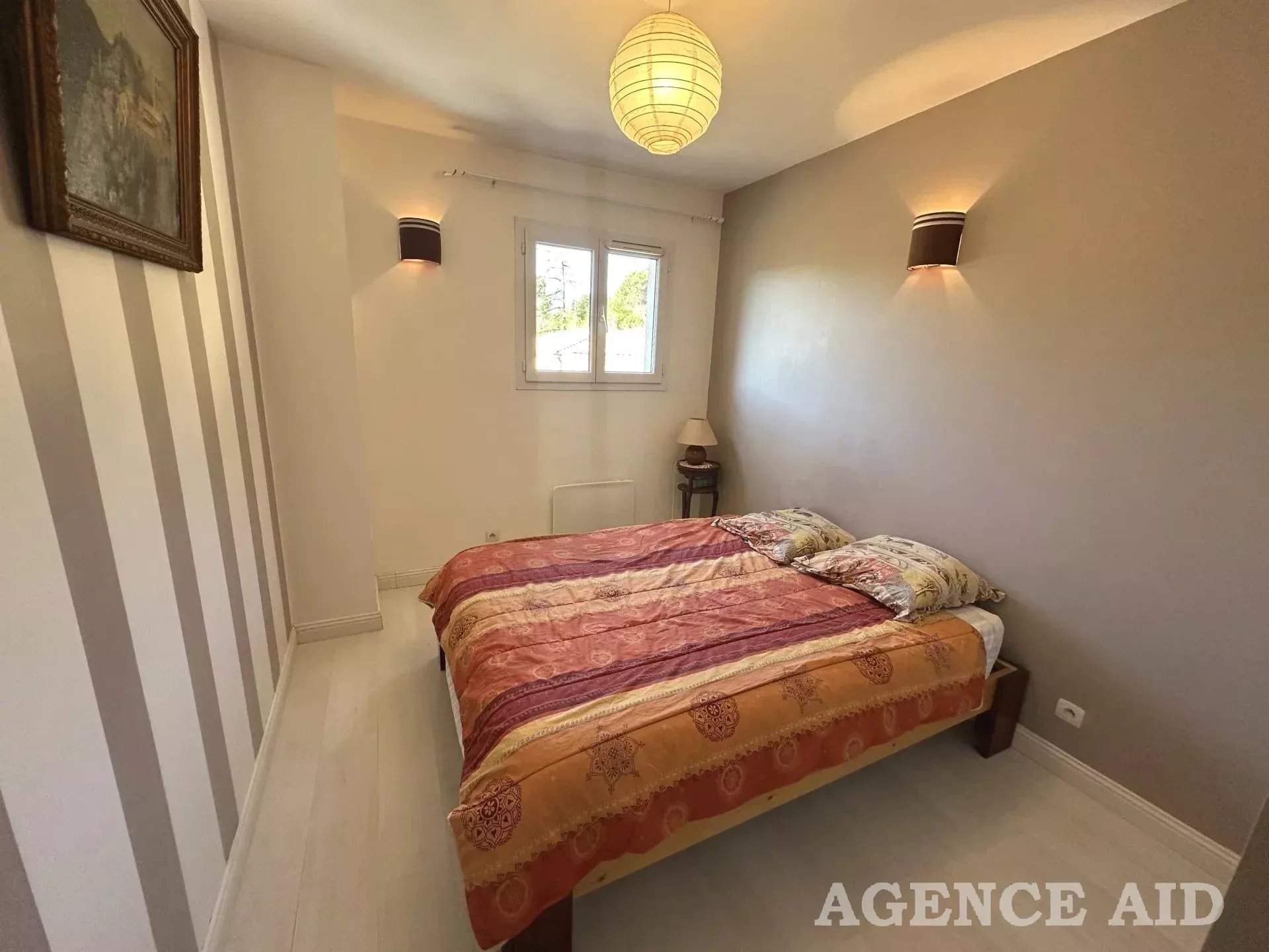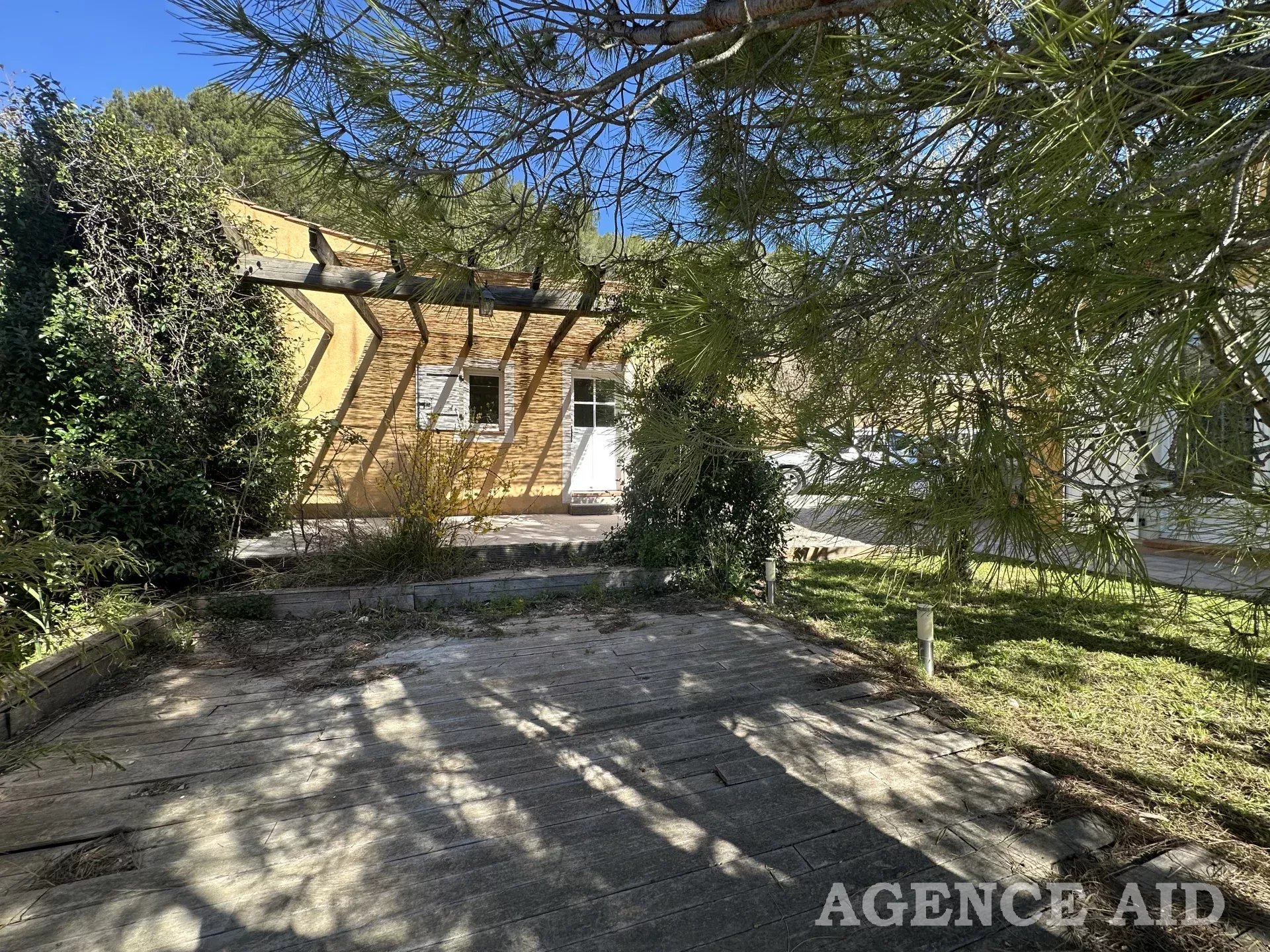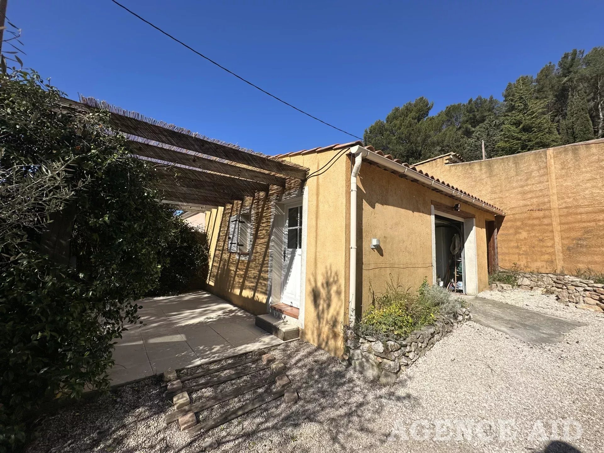 Grande terrasse carrelée en partie couverte. 1083m2 environ de terrain clos, arboré et paysagé de diverses essences méditerranéennes, piscine , plage dallée, abris, coin barbecue, petite dépendance aménagée en une pièce pouvant être transformée en bureau ou atelier. Petite terrasse attenante ombragée. Garage attenant avec mezzanine ouverture et portail automatiques, visiophone, vue imprenable ensoleillement optimum. Coup de cœur assuré à découvrir sans tarder Mdt 96249