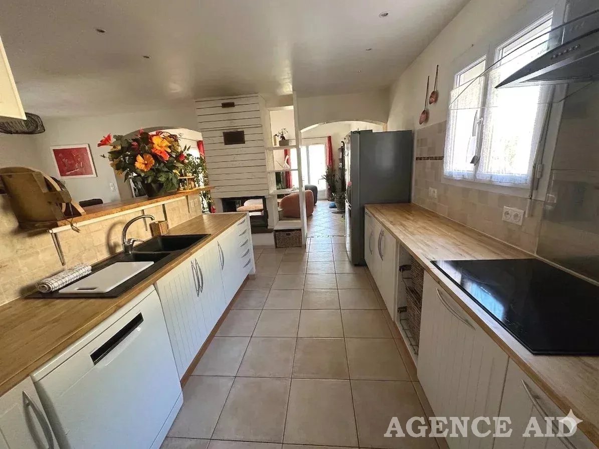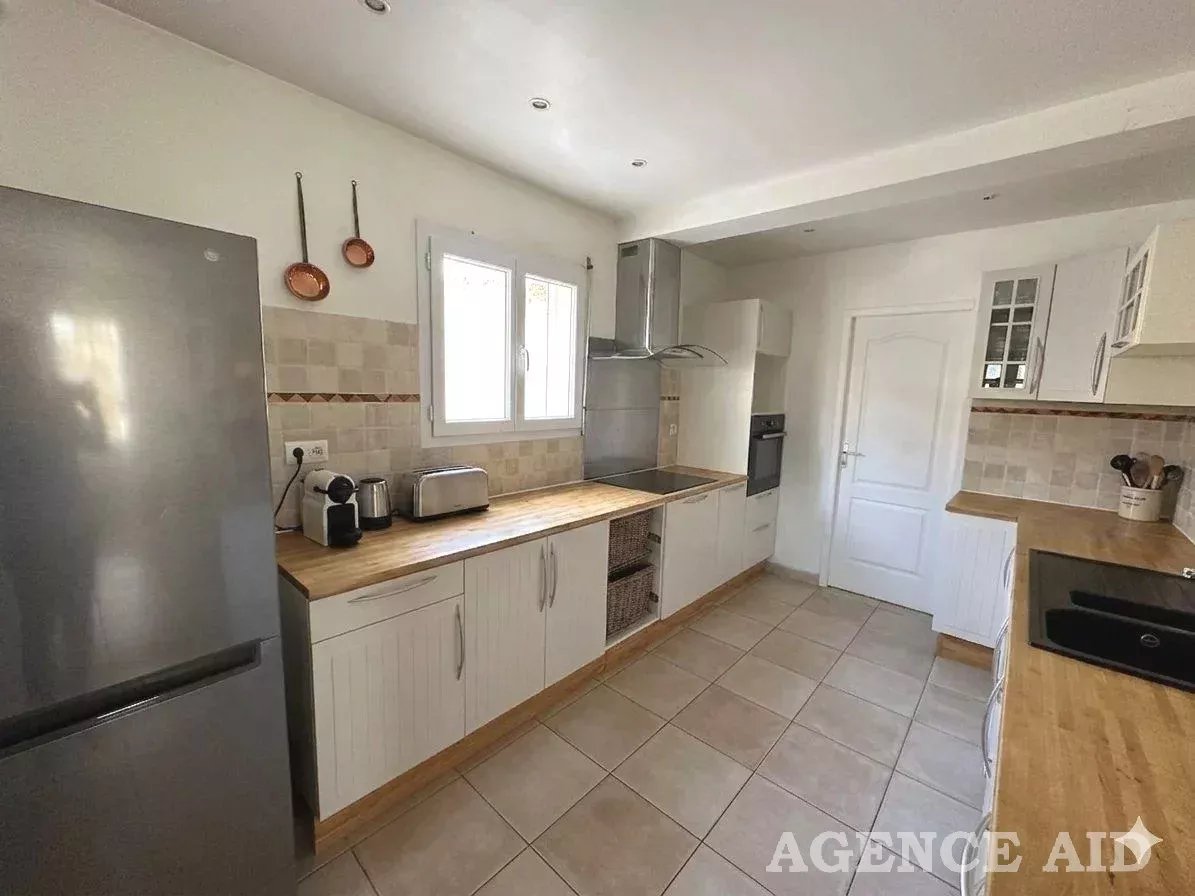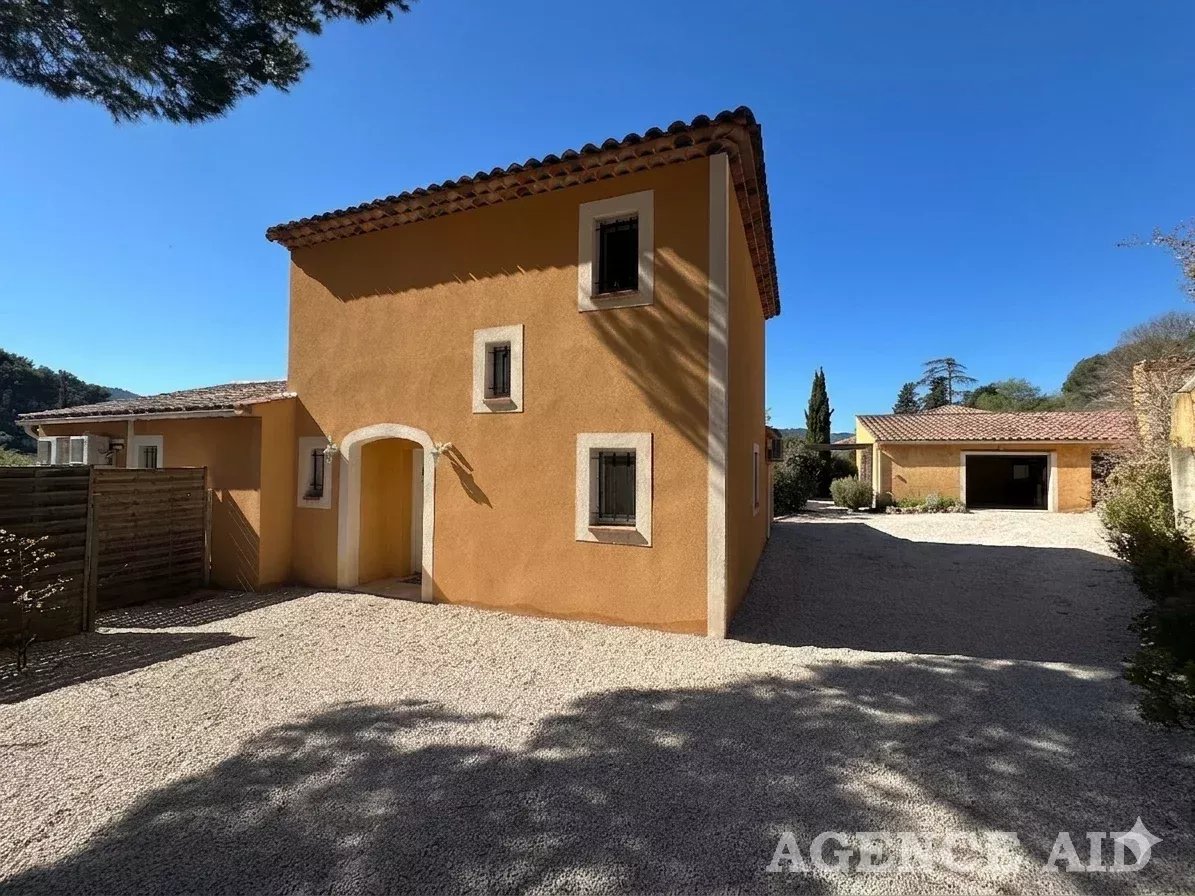 Belle villa de caractère provençal T6 EN EXCLUSIVITE dans cadre d'exception site privilégié secteur calme résidentiel recherché proximité commodités facile d'accès vue panoramique sur l'espace naturel et le village, belle villa T6 de style provençal contemporain construction tradit. 2004 sur 2 niveaux. Elle se compose au rez-de-chaussée d’un hall d'entrée avec placards de rangements, d’une agréable pièce à vivre d’environ 40m2 cheminée centrale (foyer fermé) poutres apparentes portes fenêtres ouvrant sur terrasse couverte, cuisine ouverte entièrement équipée, buanderie attenante, dégagement, wc séparé, une suite parentale comprenant un espace bureau et chambre donnant sur terrasse, salle d’eau faïencée et équipée, dressing aménagé.