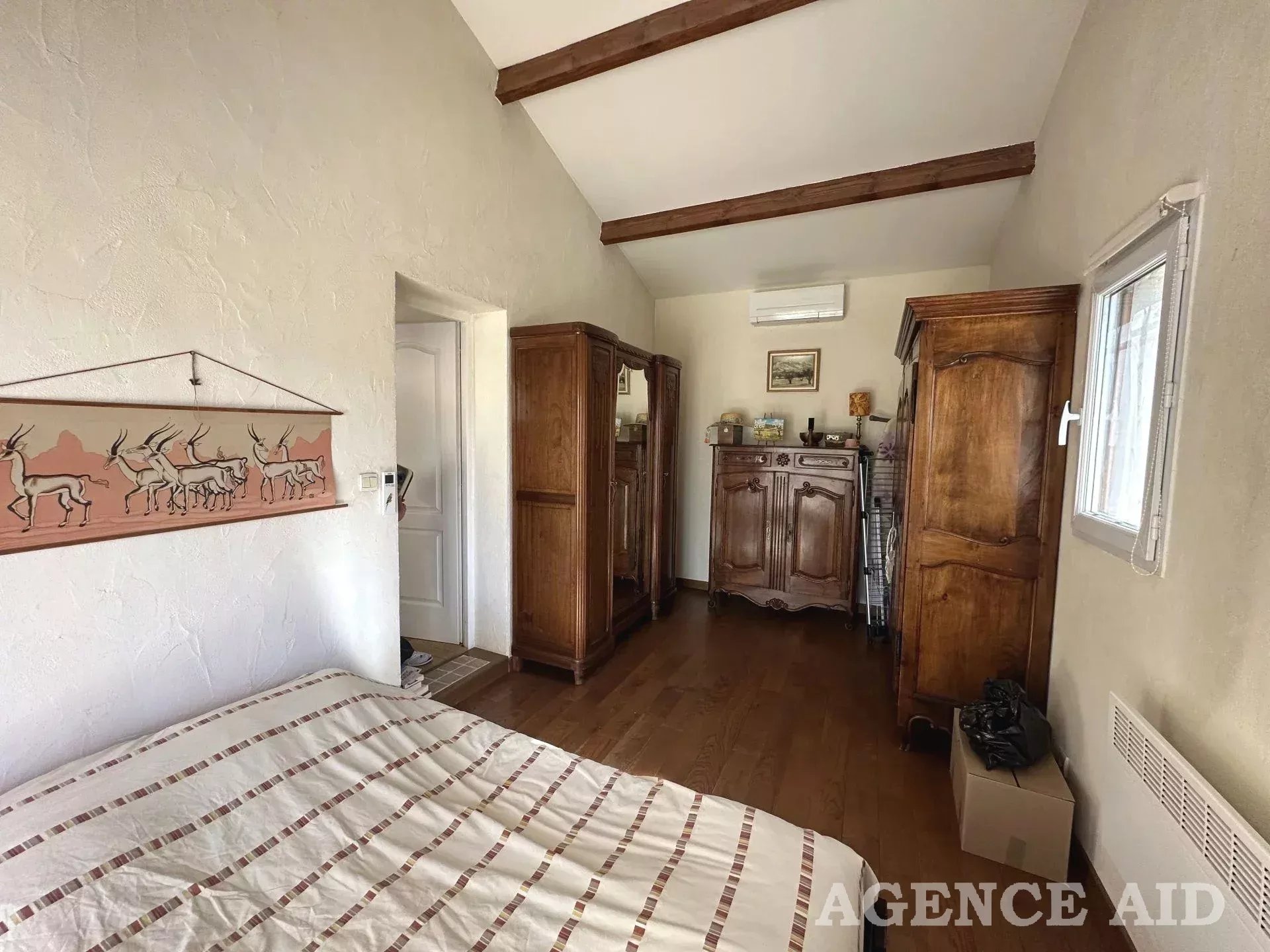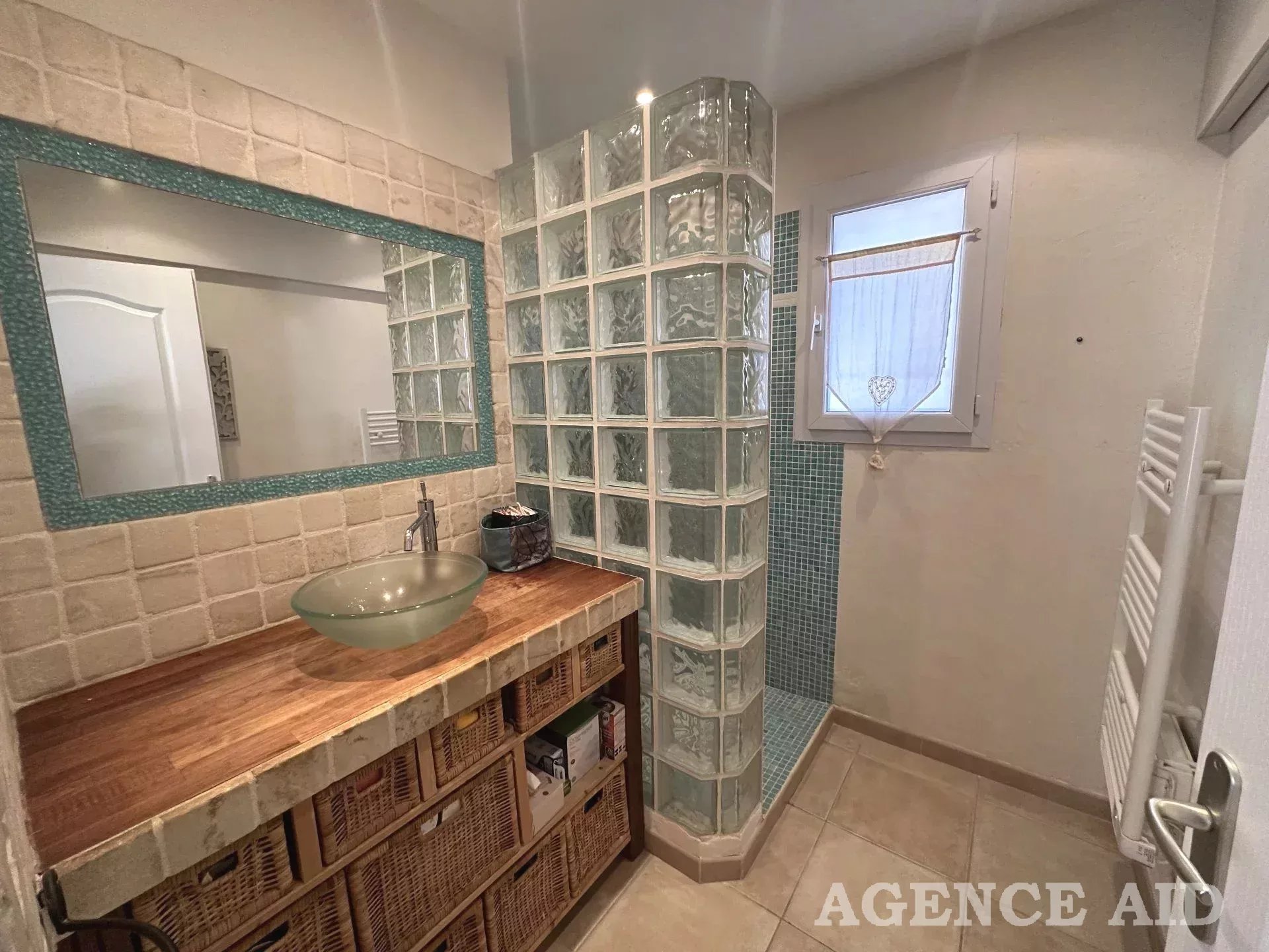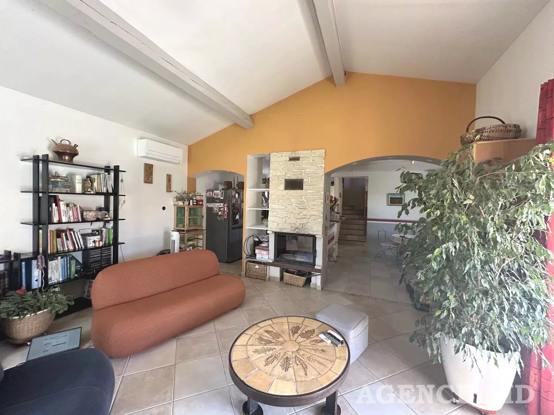 Belle villa de caractère provençal T6 EN EXCLUSIVITE dans cadre d'exception site privilégié secteur calme résidentiel recherché proximité commodités facile d'accès vue panoramique sur l'espace naturel et le village, belle villa T6 de style provençal contemporain construction tradit. 2004 sur 2 niveaux. Elle se compose au rez-de-chaussée d’un hall d'entrée avec placards de rangements, d’une agréable pièce à vivre d’environ 40m2 cheminée centrale (foyer fermé) poutres apparentes portes fenêtres ouvrant sur terrasse couverte, cuisine ouverte entièrement équipée, buanderie attenante, dégagement, wc séparé, une suite parentale comprenant un espace bureau et chambre donnant sur terrasse, salle d’eau faïencée et équipée, dressing aménagé.